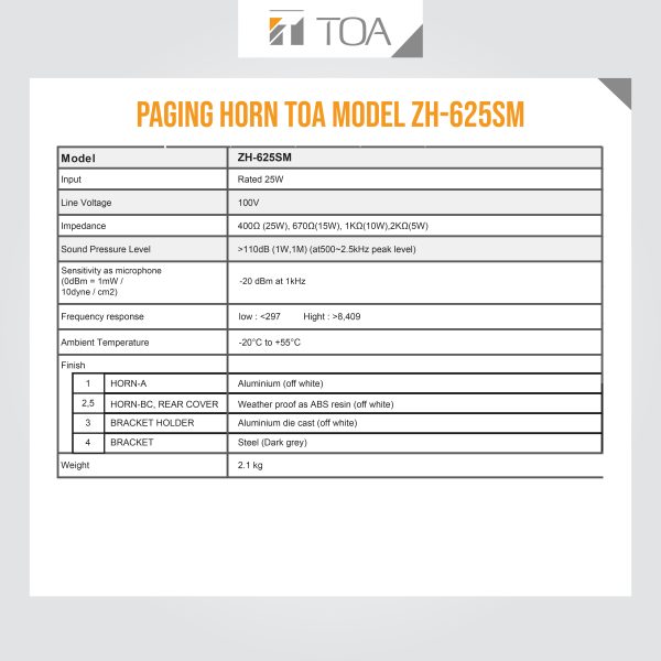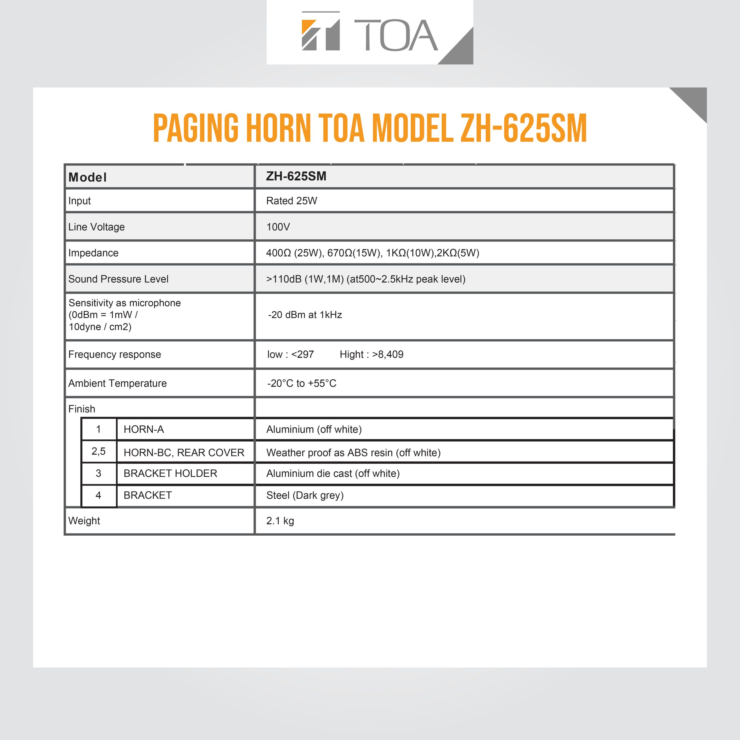 PAGING HORN TOA MODEL ZH-625SM GARANSI RESMI