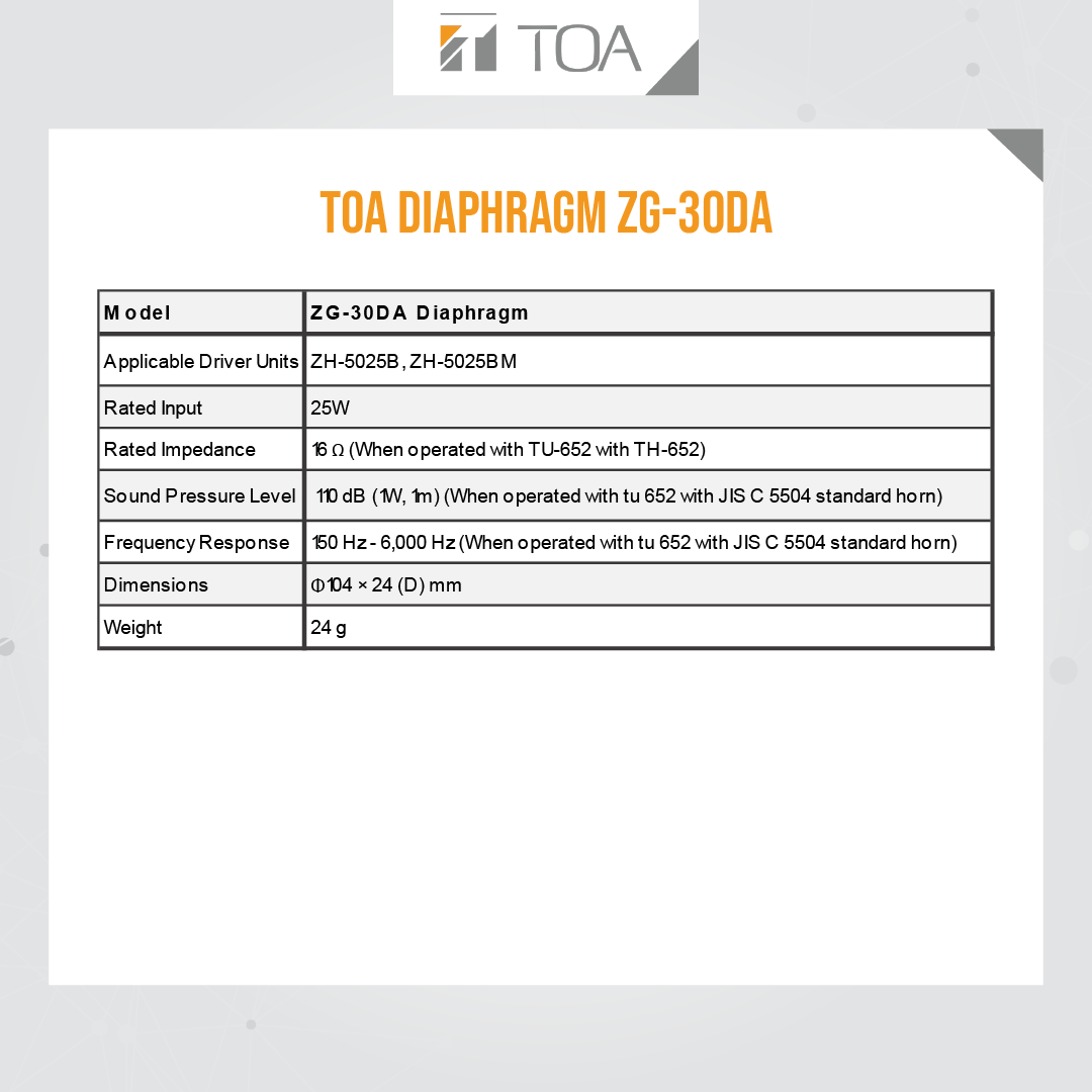 TOA DIAPHRAGM MODEL ZG30DA GARANSI RESMI